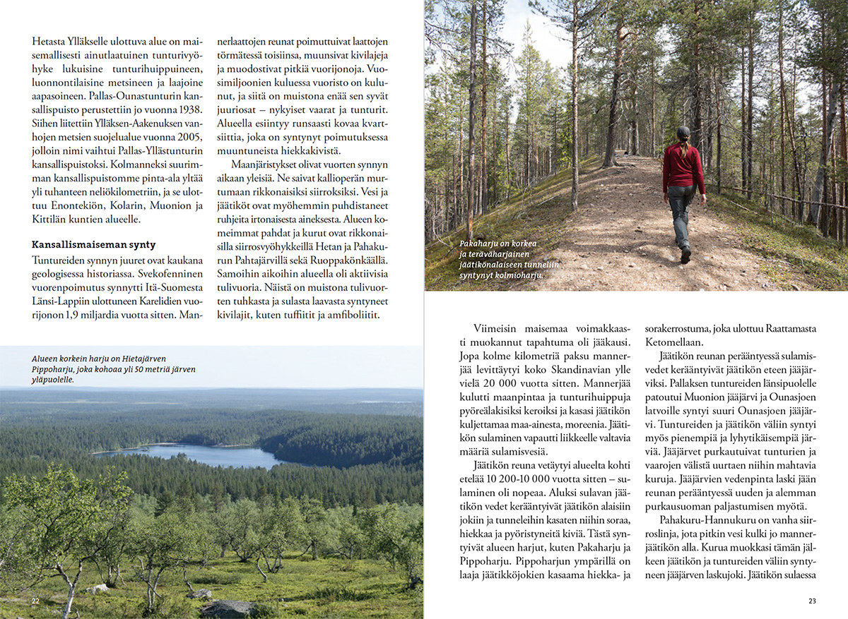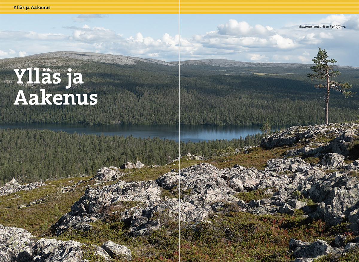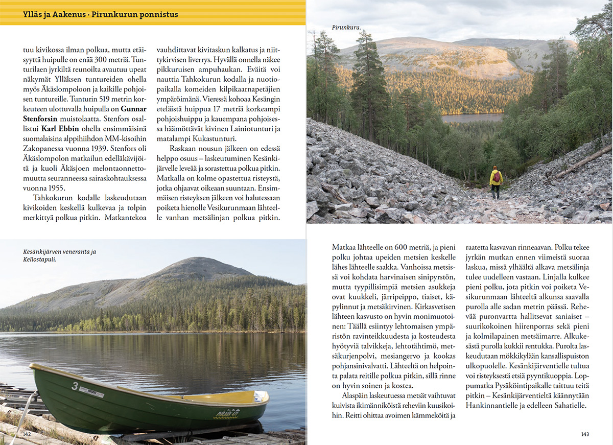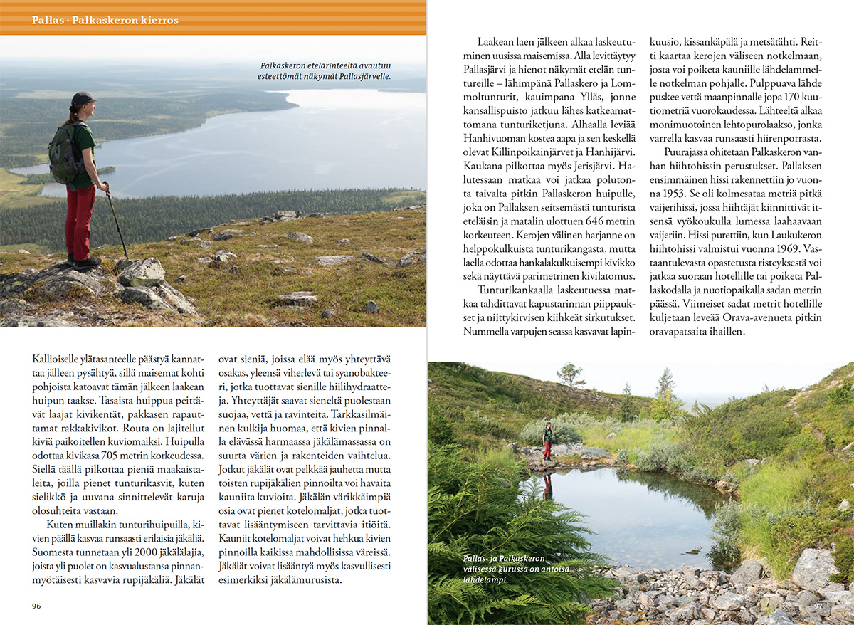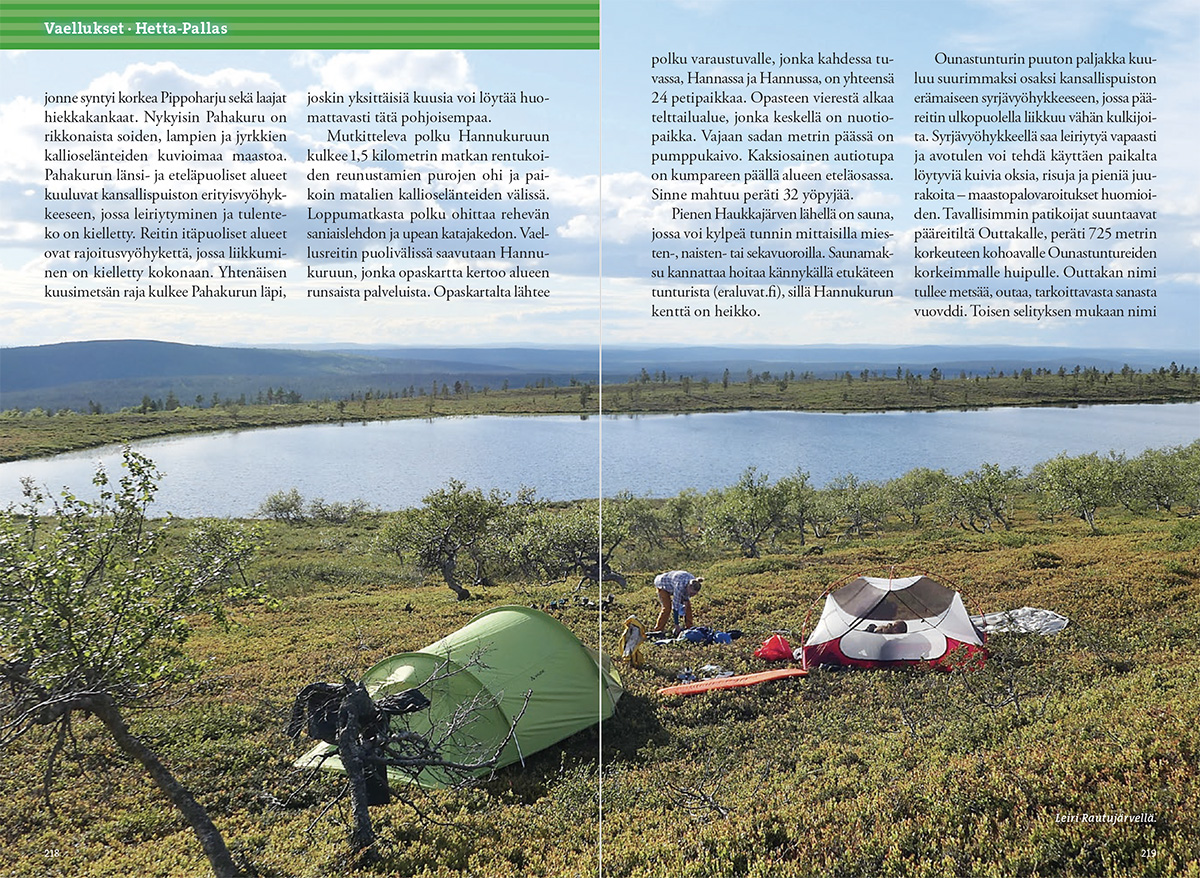 Denne guideboken, skrevet på finsk, presenterer 46 dagsturer og 3 lengre vandreruter. Den dekker hele nasjonalparken med omkringliggende sommerruter samt merkede stier rundt Hetta og Levi. Boken er delt inn i fire geografiske områder og inneholder også kapitler om natur og historie, i tillegg til praktiske råd for en vellykket tur.