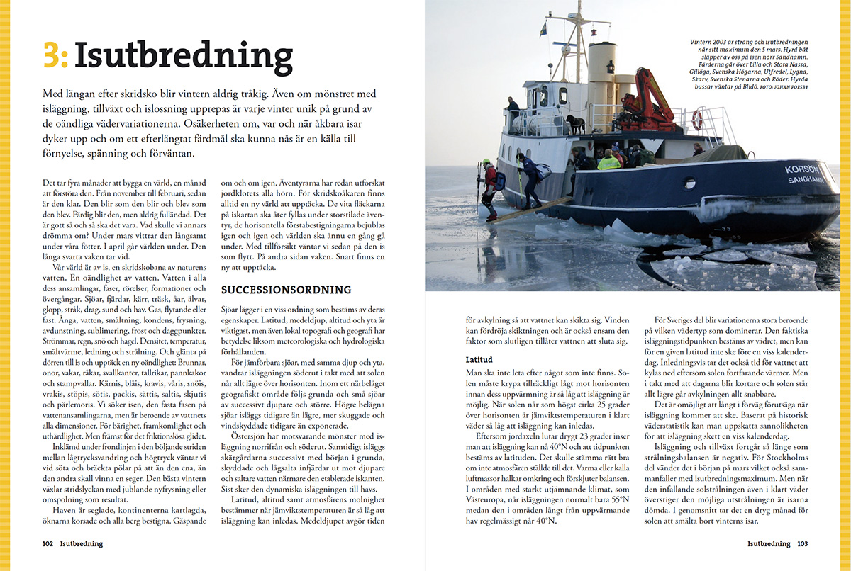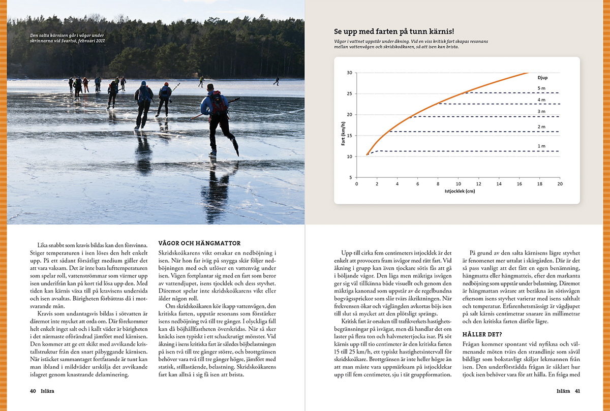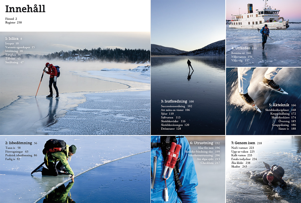Det här är en ny utgåva av det svenska referensverket inom skridskoåkning och isbedömning. Boken har fått ett större format och uppdaterat innehåll. Författaren Mårten Ajne presenterar här sina omfattande kunskaper om isar och skridskoåkning, med förhoppningen att bidra till att ge läsaren mer njutbara turer och åka med större säkerhet. Boken erbjuder både enkla, beprövade tumregler och avancerade fördjupningar.