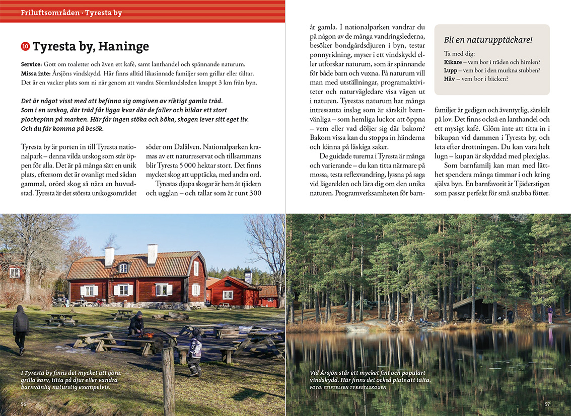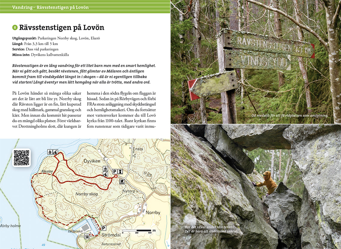 Den här är en guide till familjevänligt friluftsliv runt omkring Stockholm. Du får förslag på lagom långa vandringar, med eller utan barnvagn, en guide till friluftsgårdarna runt stan, tips på spännande utsiktsberg, natursköna badplatser, var det brukar plogas skridskobanor och var du kan hyra kanoter.