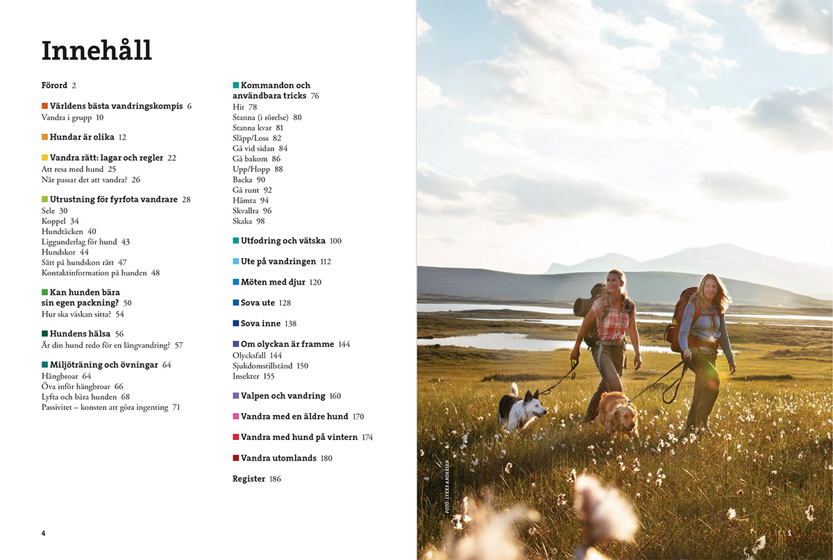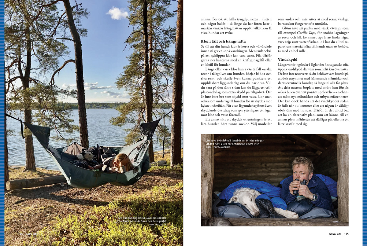 Vandra med hund är en omfattande handbok som guidar dig genom de vanligaste frågorna inför turen. Kan hunden också bära packning? Hur lär man den att komma till ro i tältet – eller i en stuga bland andra vandrare? Och hur förbereder man sig inför en längre vandring? Här får du veta vad som är viktigt att tänka på, från planering av hundens mat till hur ni kan minska risken för skador.