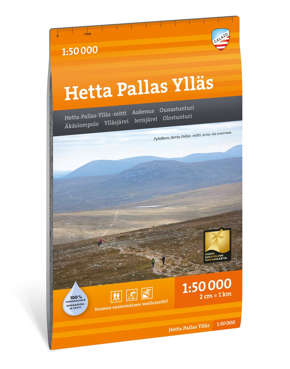 HettaPallas -reitille! Suosituin vaellusreittimme kulkee vanhimmassa kansallispuistossamme ja jatkuu Ylläkselle ja Aakenukselle asti. Seudulla riittää retkeiltävää tunturireittien lisäksi myös Jerisjärvellä ja Ounasjoella. Karttamme painetaan mainiolle Tyvek-materiaalille, joka on vedenkestävää ja repeämätöntä. Niinpä sinun ei tarvitse suojata karttaasi sateelta eikä karttasi repeydy käytössä. Valmistaja takaa materiaalin kestävän 20 000 taittokertaa. Nerokkaan lehtijaon ansiosta kaikki alueen tärkeimmät retkikohteet mahtuvat yhdelle kartalle.