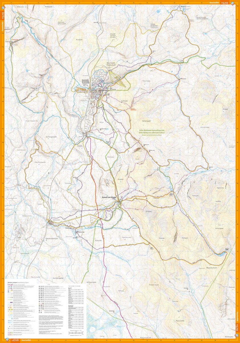 Karttamme painetaan mainiolle Tyvek®-materiaalille, joka on vedenkestävää ja repeämätöntä. Niinpä sinun ei tarvitse suojata karttaasi sateelta eikä karttasi repeydy käytössä. Valmistaja takaa materiaalin kestävän 20 000 taittokertaa. Nerokkaan lehtijaon ansiosta kaikki alueen tärkeimmät retkikohteet mahtuvat yhdelle kartalle.