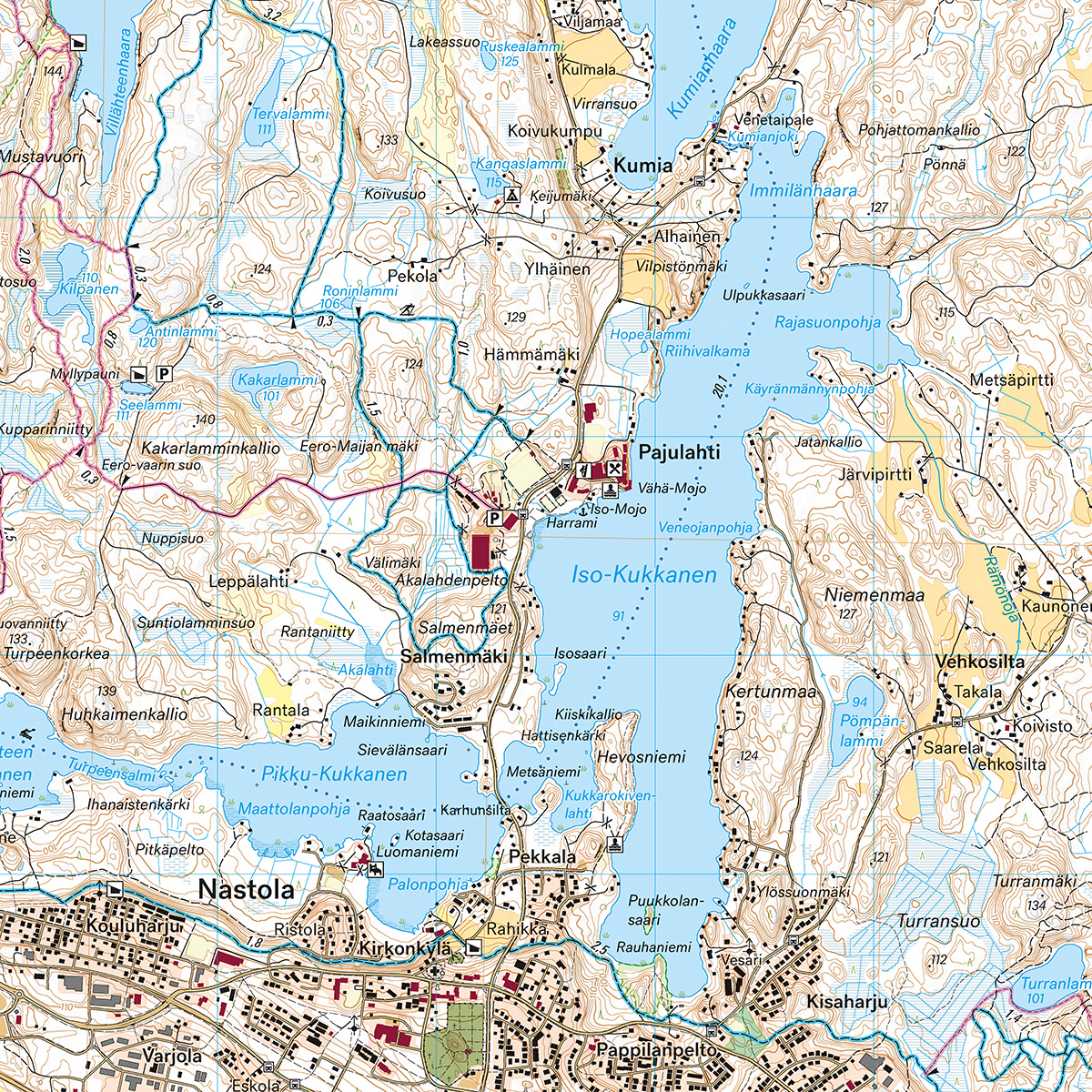 Oppdag Lahti og Salpausselkä med sine fantastiske skiløyper og høydepunkter på Tiirismaa. Området har også flotte terrengsykkelstier og omfattende turstier med fasiliteter i Hollola og Lapakisto. For padling kan du ta helgeturer på Vesijärvi og Nastola-sjøene.