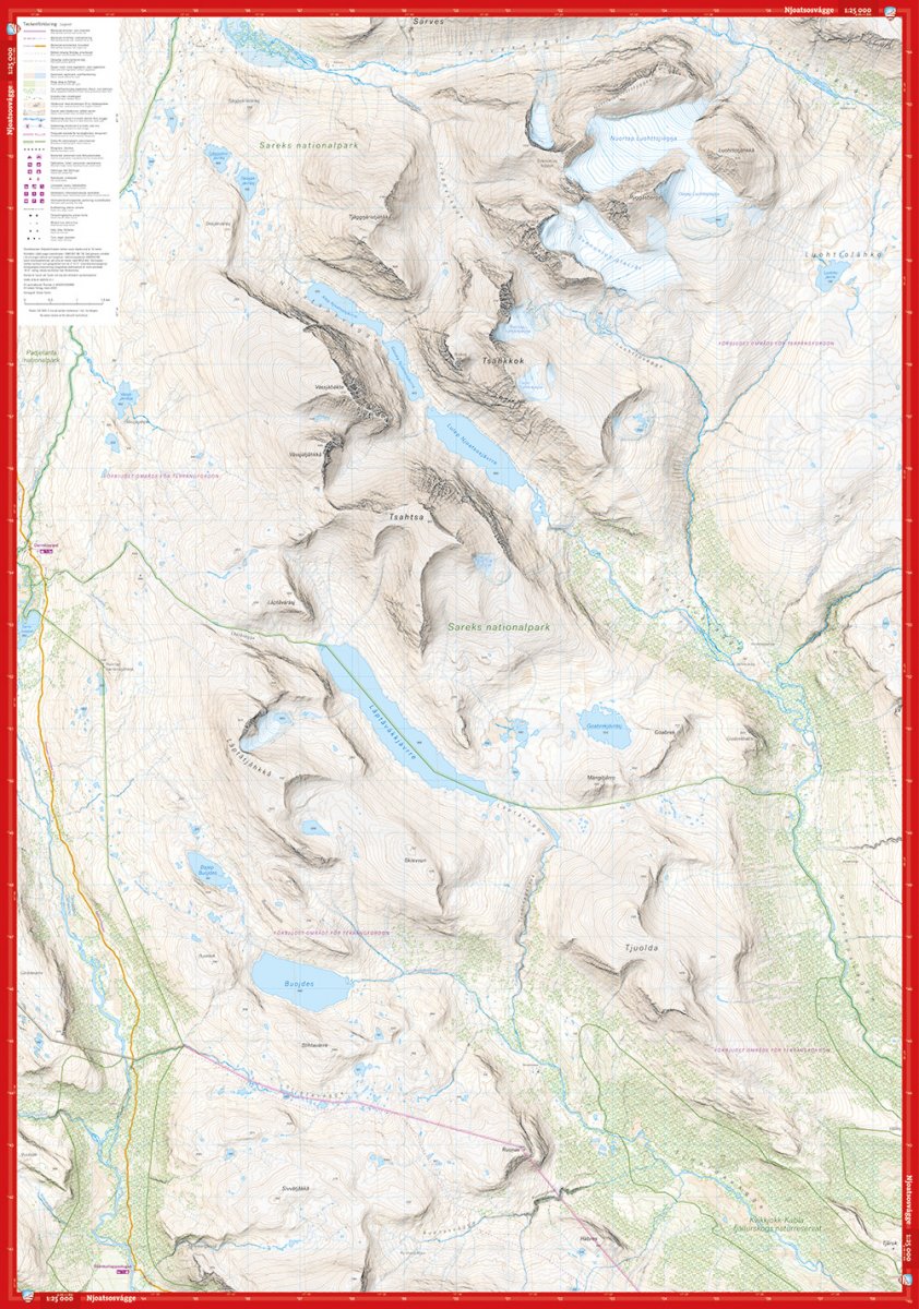 Det här är en av tre unika kartor med en detaljrikedom som aldrig tidigare funnits över Sarek. Terränginformationen i kartan är baserad på flygburen laserskanning. För första gången framträder branter, större stenar, skog och vattendrag med en exakthet som på riktigt motsvarar verkligheten. Glaciärernas aktuella utbredning är framtagen i samarbete med Institutionen för naturgeografi på Stockholms Universitet.